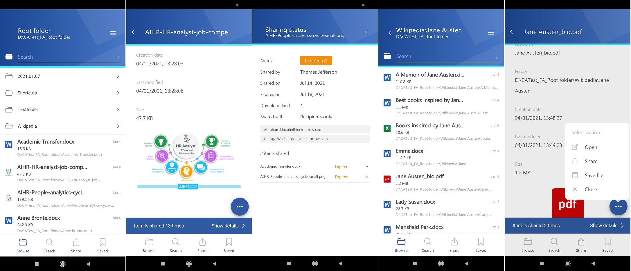 Browse and search your archived content with optimal web access via contentACCESS Portal. Get your mobile app support with contentACCESS Mobile for iOS or Android. Create scheduled archiving tasks and enjoy smart advanced filter settings. Keep your archived documents accessible, without restoration. All this without the need to send large attachments – share the file, or even entire folders, in a secure and effective way with our sharing module.