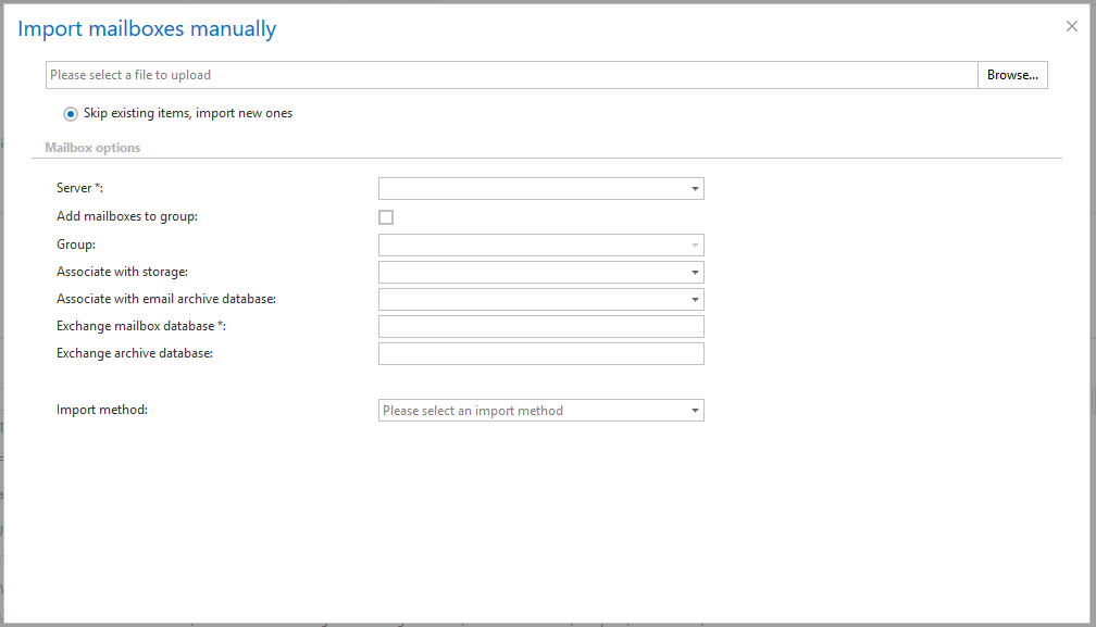 Import mailboxes manually: Ever wondered how to add mailboxes which are no longer available to email archive? Using this new feature it is not necessary to create a physical mailbox, there is a possibility to import the mailbox information from CSV or XML files.