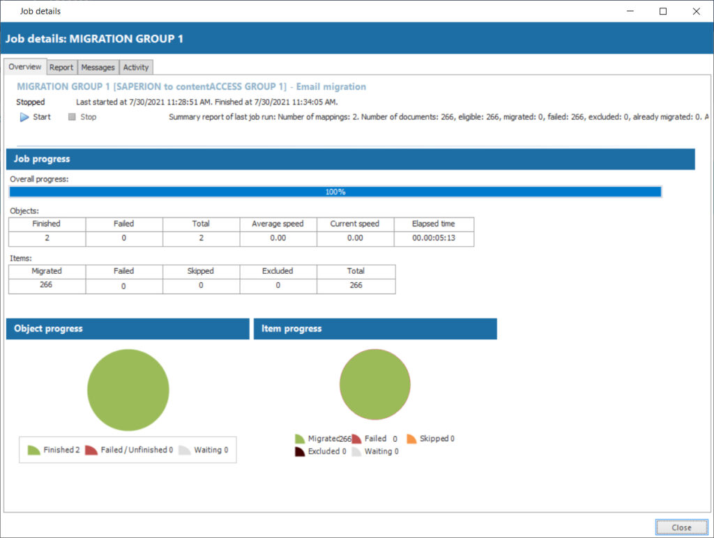 When your migration is complete, you can easily create a report and evaluate the result.