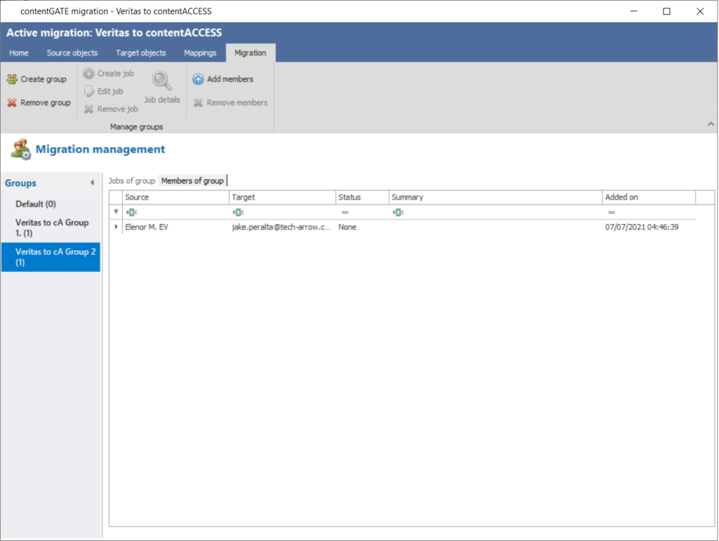Migration can be started only at a group level. Group management makes the migration process more transparent and clearer. It makes it easier to check, which mailboxes have already been migrated and helps to prioritize important mailboxes.